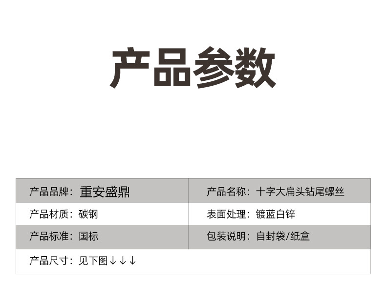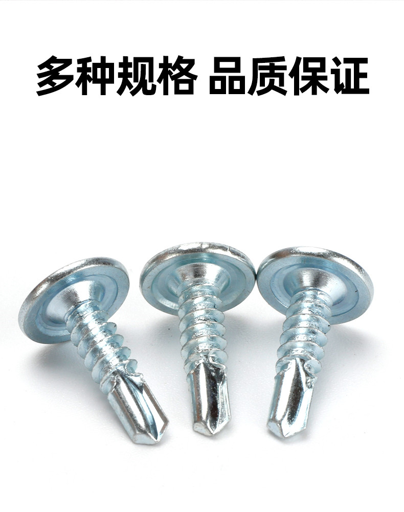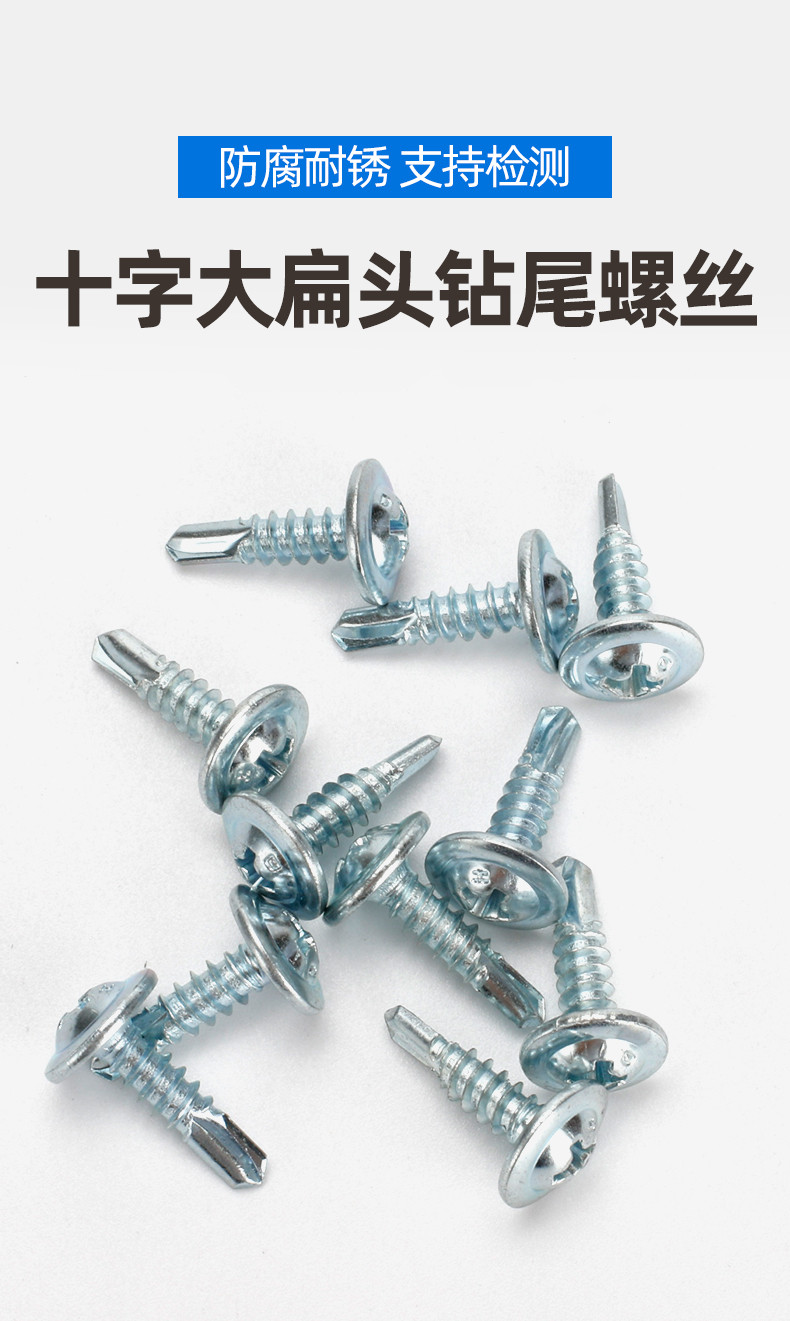 商品名称:重安盛鼎 镀蓝白锌十字大扁头带垫钻尾螺丝钉扁头带介华司自攻钉燕尾钉 M4.2*19(100个)
