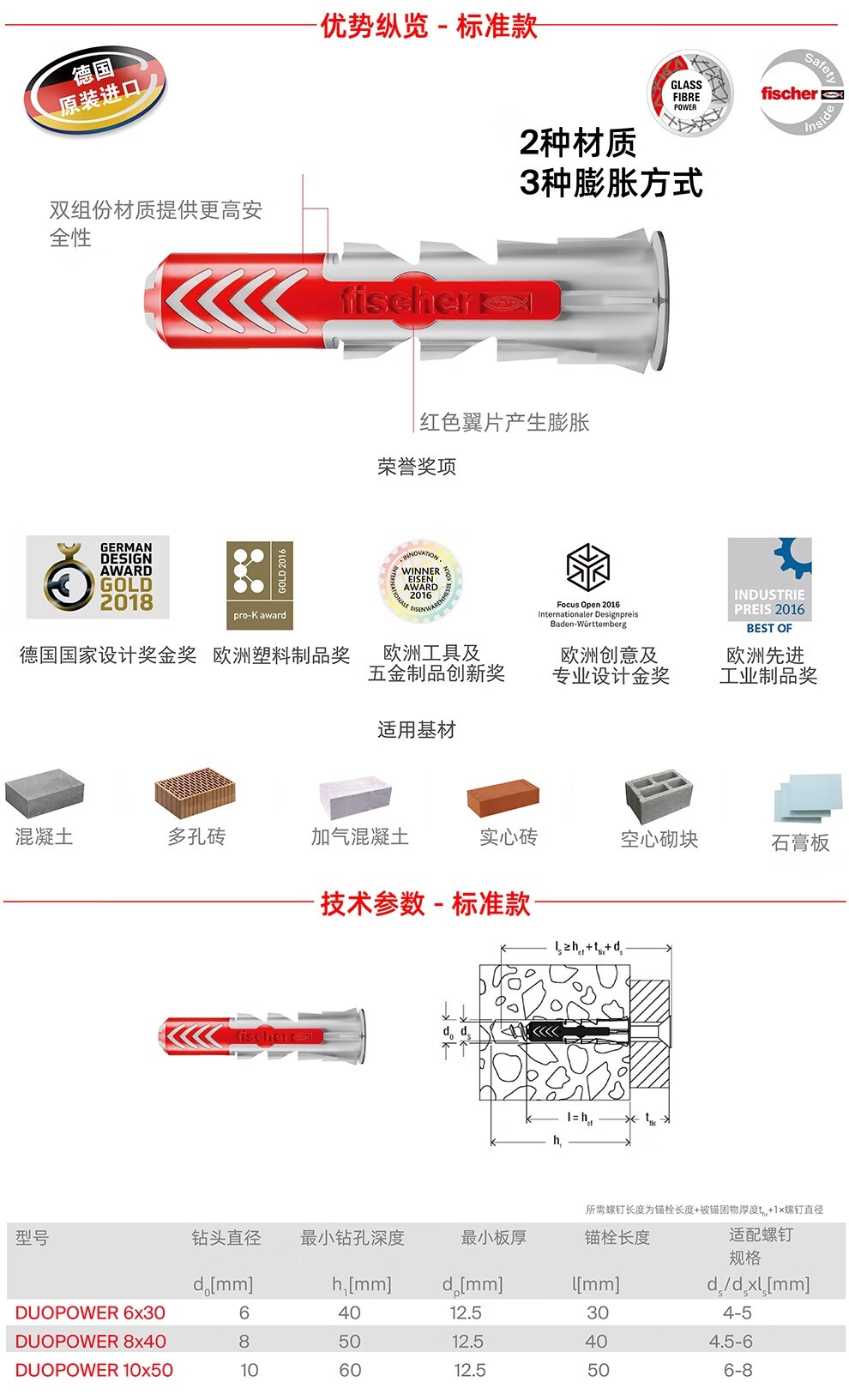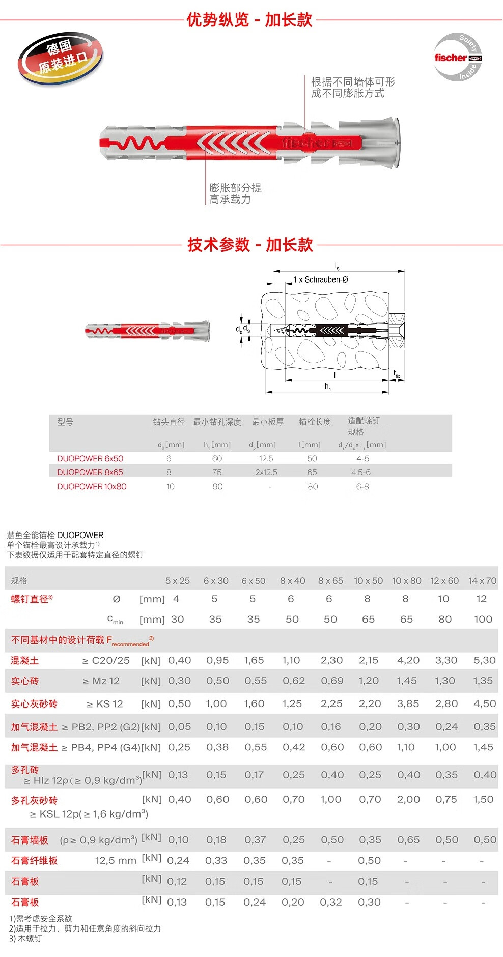商品名称:德国慧鱼fischer原装进口膨胀螺丝塑料膨胀管Duopower空心砖加气砖石膏板专用吊柜挂架螺栓