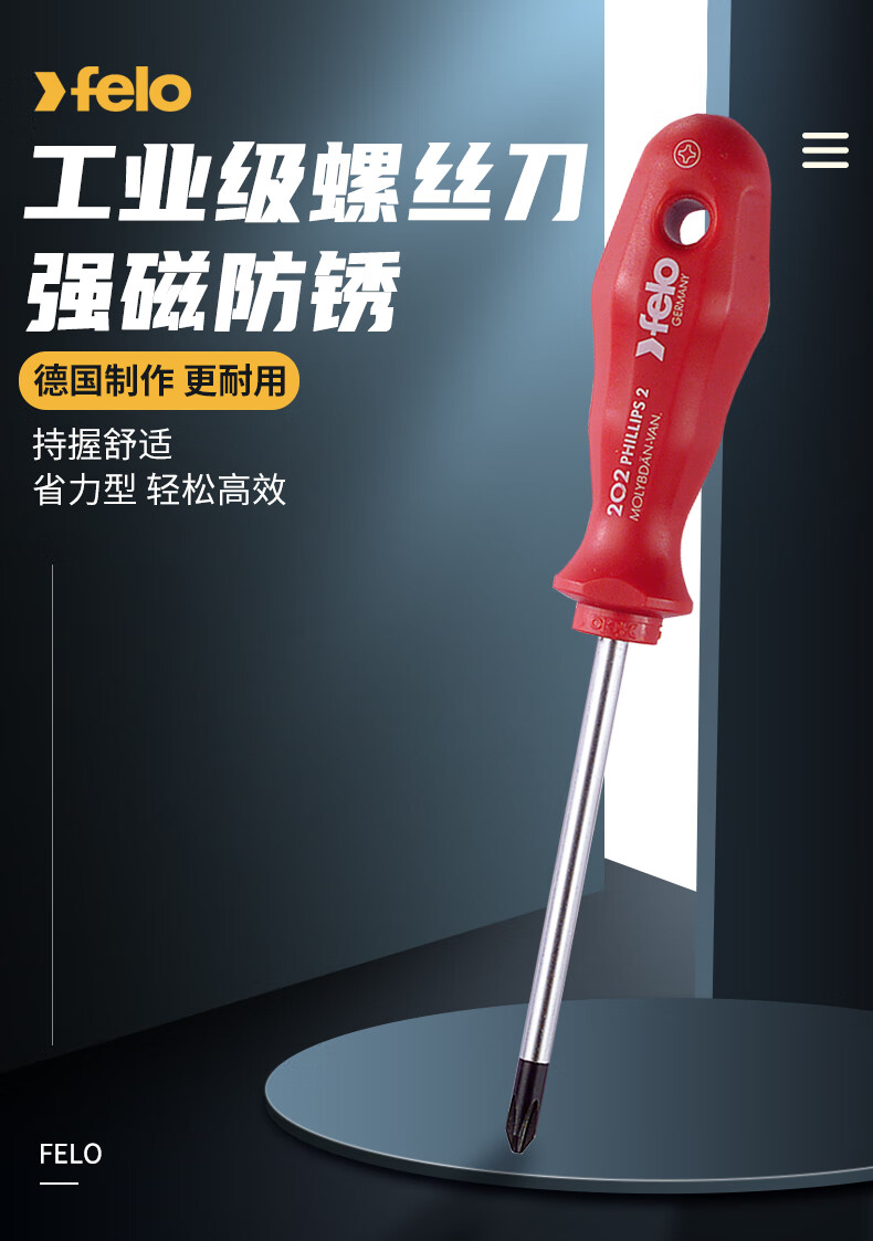 商品名称:FELO 德国原装进口螺丝刀PP减震手柄 十字螺丝起子铬钒钢起子螺丝批维修工具20210290(4.5*80mm)