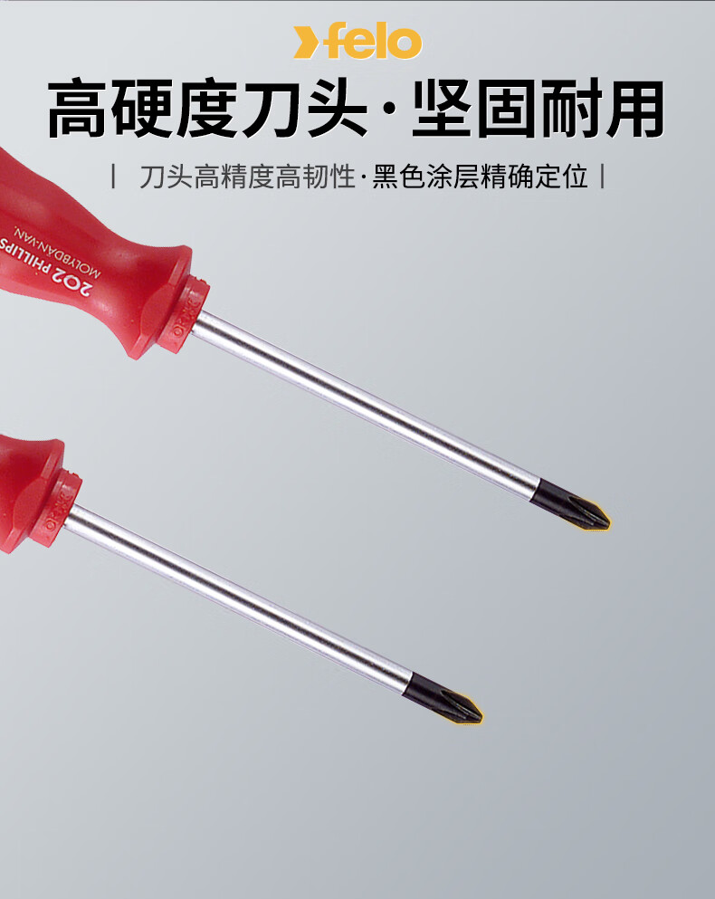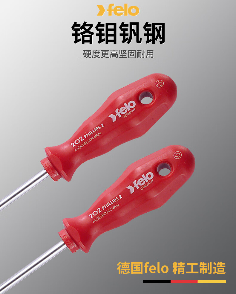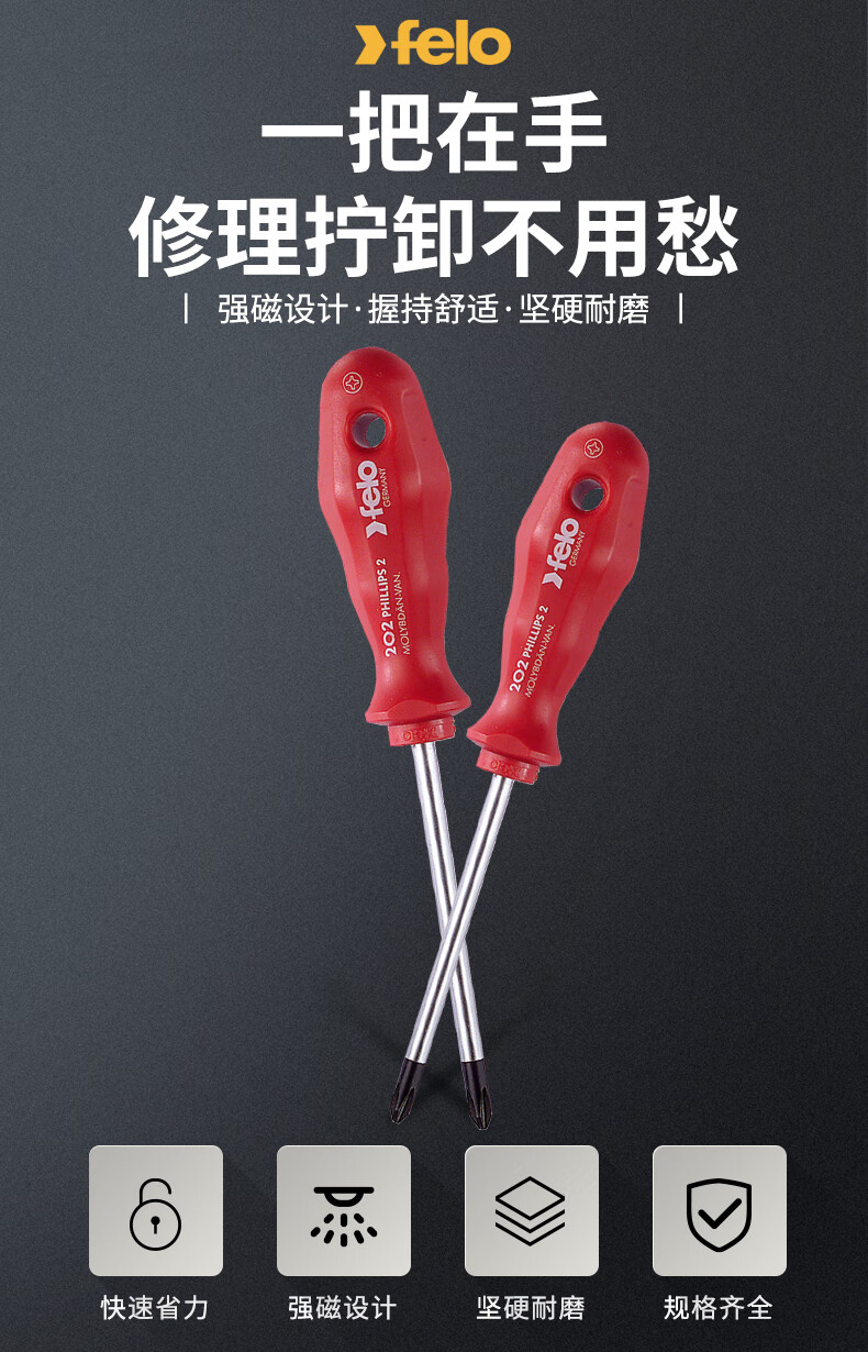 FELO 德国原装进口螺丝刀PP减震手柄 十字螺丝起子铬钒钢起子螺丝批维修工具20210290(4.5*80mm)