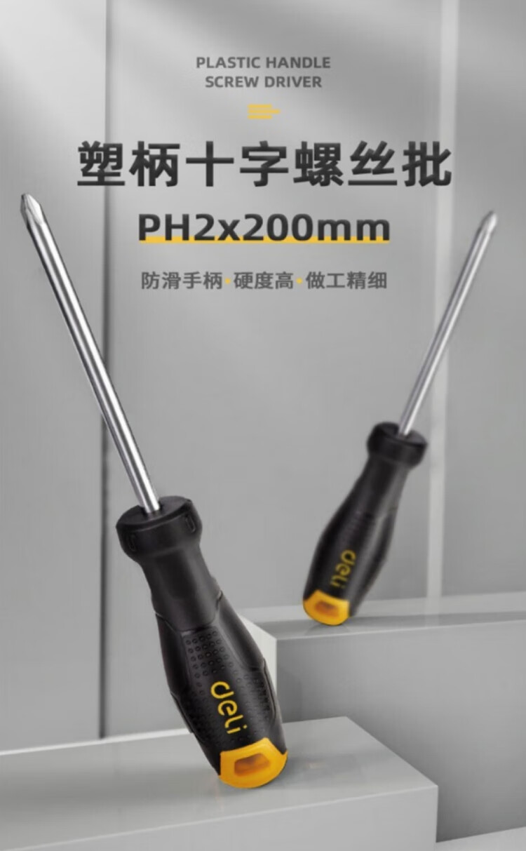 商品名称:得力 塑柄十字螺丝批PH0x75mm DL623075